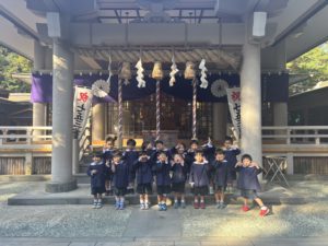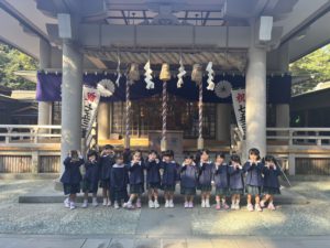 年少、年中、年長で滑石大神宮へ七五三参拝に行きました。神宮さんからお祓いをして頂き、これからのさらなる健康と健やかな成長をみんなで祈願してきました。