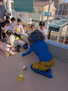 誕生会の後に、滑石保育園にも赤鬼と青鬼がやってきました!!子ども達は、必死に逃げながらも豆を投げて”鬼退治”。今年1年無病息災に過ごせますように…☆彡