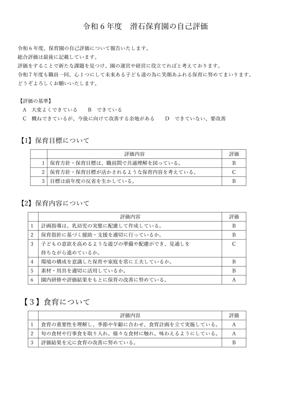 「社会福祉法⼈ ⻑崎市社会福祉事業協会 幼保連携型認定こども園 滑⽯保育園」が保有する個⼈情報に関して適⽤される⽇本国の法令・規範を遵守すると共に、上記各項における取り組みを適宜⾒直し、改善していきます。